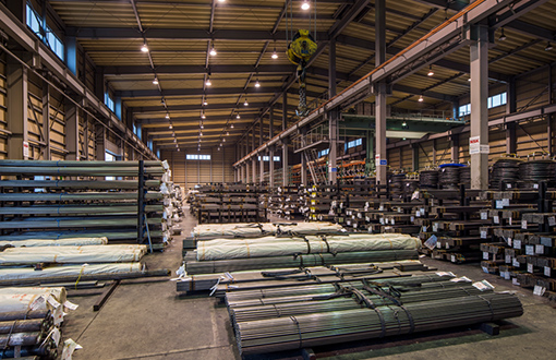 鋼材は主に特殊鋼を得意とし、鋼材の輸送、保管管理、そして部材を加工・管理すると共に、完成品の納入まで、一貫した鋼材専用の物流・加工システム業です。