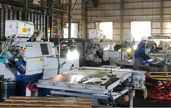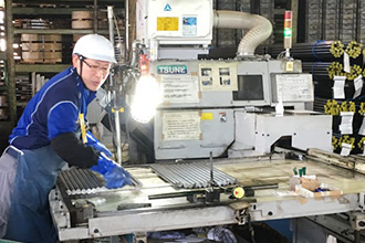 工場えは丸棒鋼をはじめとする各種棒鋼材の量産切断を行っています。(小ロット対応可)鋼材の保管~切断~納品まで一連の流れが作業効率の向上を生み、ユーザーの管理業務の軽減や材料在庫削減につながっています。