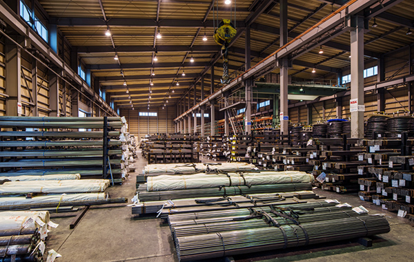 関越自動車道前橋インターから3分の場所に位置し製品の保管、文束、丸棒の切断、出荷までを対応。取扱量は月間1500トンに及び、在庫管理システムにて文束後の鋼材まで管理している。